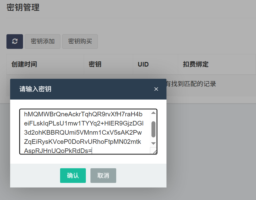 第四步:绑定激活码,点击"密钥管理","密钥添加",输入激活码,点击"确认"。